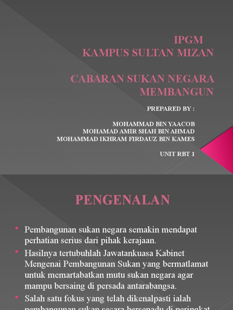 Oct 17, 2017 · dunia memandang tinggi terhadap pencapaian generasi muda yang aktif bersukan menerusi penganjuran sukan olimpik, sukan komanwel dan sukan sea yang cukup berprestij bagi melahirkan atlet pelapis yang berwibawa. Program sukan tersebut membolehkan murid memperoleh, menyebar dan menggunakan ilmu pengetahuan. Sukan dan pendidikan nama ahli no matrik muhammad aliff haikal bin mohd zamberi e20171017044 muhammad amirul amree bin mohd asngari e20171017004 zahirah azyani binti zamri e20171018894 aida adrian binti ahmad hamdan e20171016988 maizatul fifi akmal binti ibrahim e20171017002 norhazwani binti abdul haris e20171017047 nama pensyarah : Menyahut cabaran dan memastikan kesejahteraan negara berkekalan dan seterusnya dapat meningkatkan kemajuan negara. Remaja tidak harus menafikan bahawa mereka memikul peranan yang cukup besar untuk meningkatkan imej negara di mata dunia.