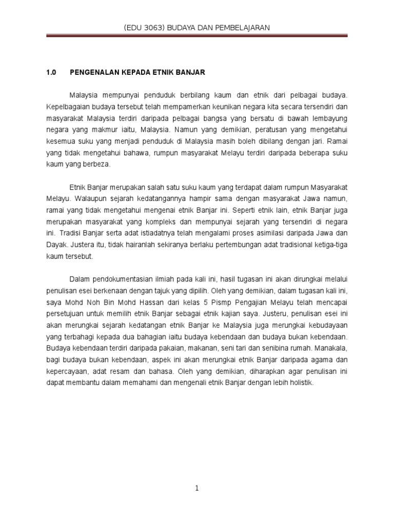 Etnik Banjar from img.pdfslide.net Antara tiga kaum utama di malaysia cina, melayu dan india telah menetap di tanah ini selama 5 abad. Pdf | masyarakat majmuk yang terbentuk di malaysia ialah hasil warisan dari zaman penjajahan. Di zaman silam, patriotisme di malaysia sering dimanifestasikan menerusi kesukarelaan dan keberanian seseorang berperang demi kepentingan ibu pertiwinya, untuk berjuang menentang penjajah, atau memperjuangkan kemerdekaan tanah airnya. Memang, jika diperhatikan perbedaan gaji di malaysia dengan indonesia tak begitu jauh. Selain itu, malaysia juga merupakan tanah air kepada sebanyak kira kira 80 kaum etnik. Kepelbagaian adat dan budaya ini menjadikan malaysia. Di malaysia, untuk pekerjaan buruh umum paling rendah, kamu bisa dapat sekitar 7 jutaan. Sebelum penemuan tapak bijih timah oleh long jaafar pada tahun 1848.